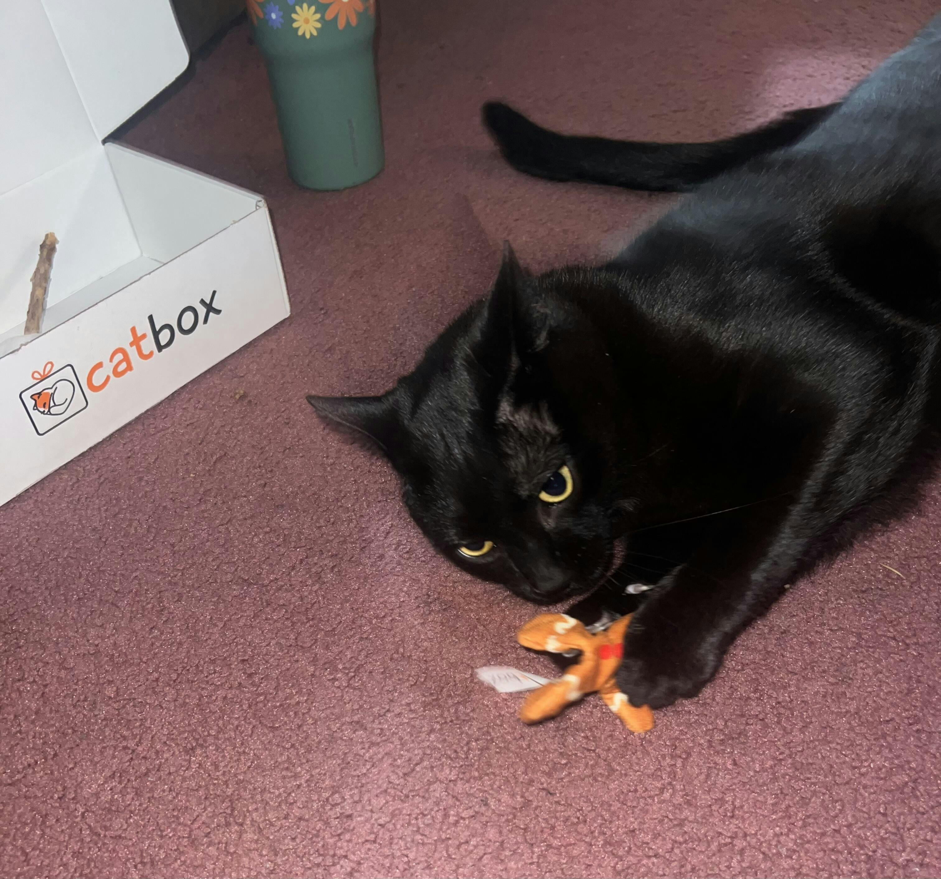 "I kept seeing the ads on Facebook for Catbox. I had to give this a try. Who wouldn’t want themed cat goodies? I canceled my other service and went with Catbox.