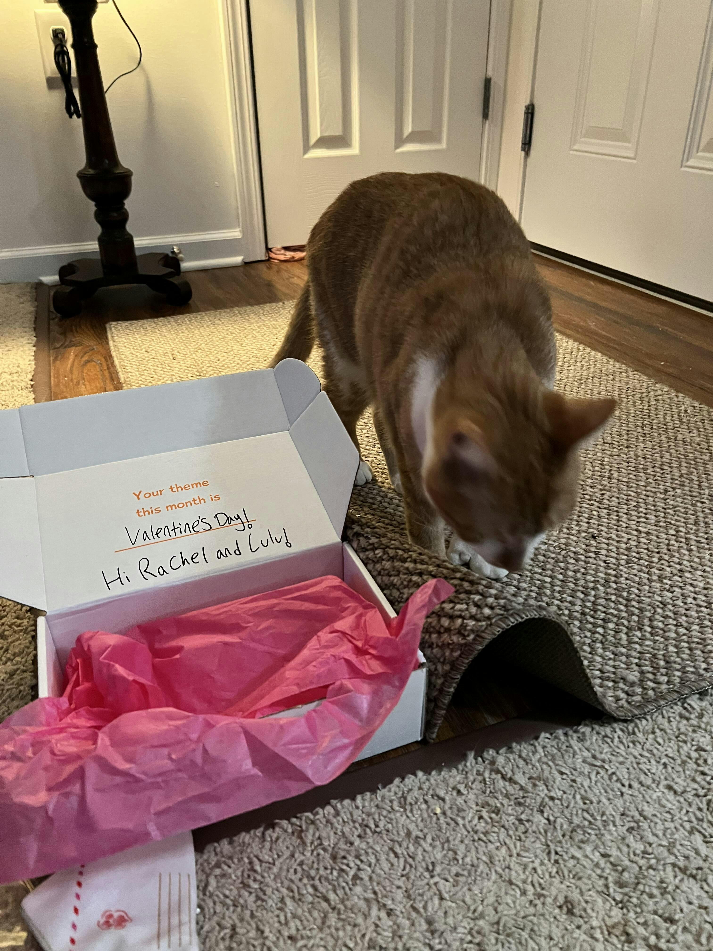 😻 Handwritten Messages: We include a thank you card with a handwritten note, and we also write your cat's name on your box to give you both a warm welcome to catbox!