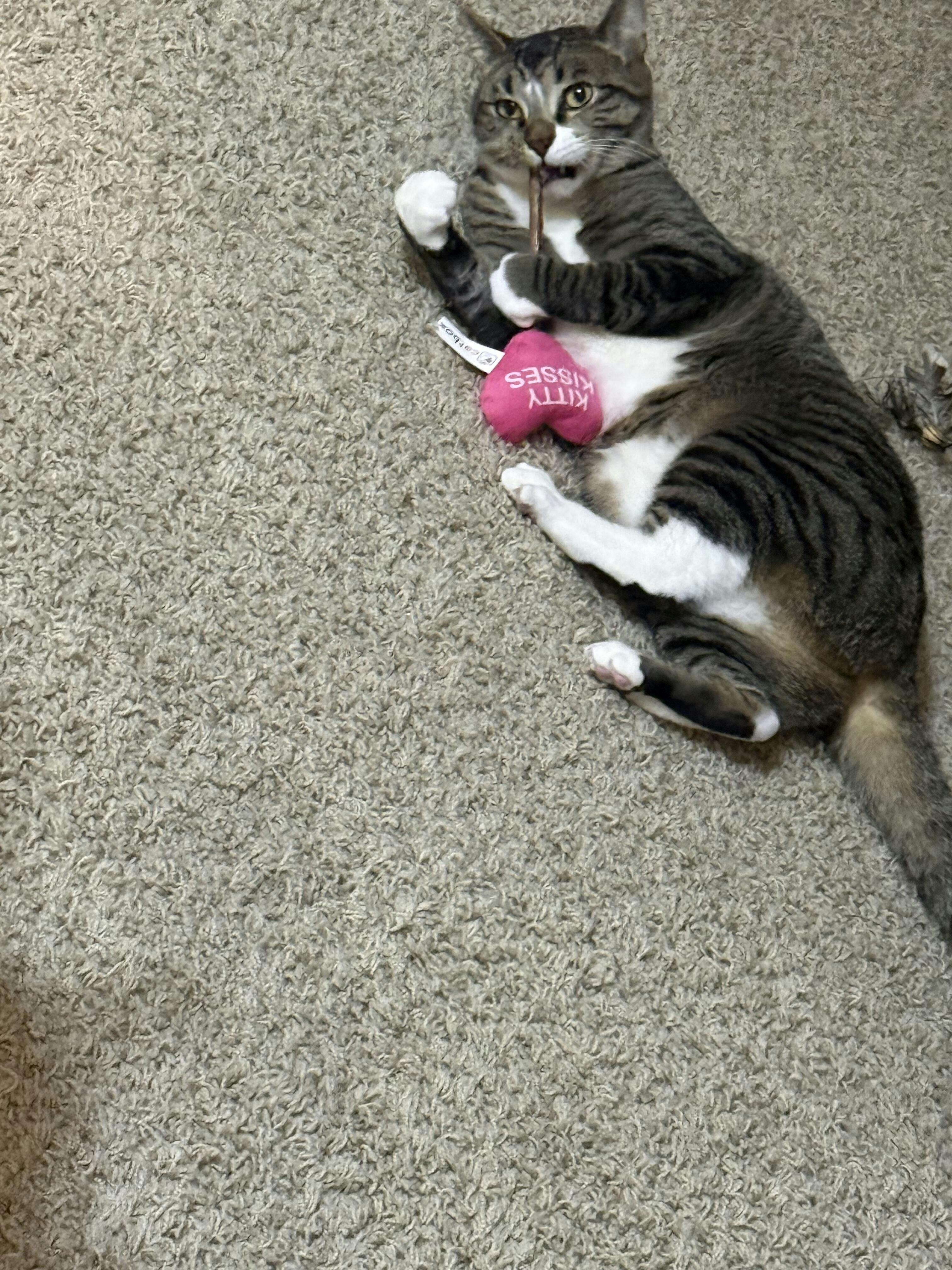 Boredom and stress can lead to poor behavior and ultimately a sad cat, so our boxes are designed to prevent this! Just like humans, cats get bored of the same routine, items, etc. in their every day lives. Regular introduction of new and exciting toys and treats keeps your cat mentally stimulated and physically active, contributing to their overall happiness and well-being.