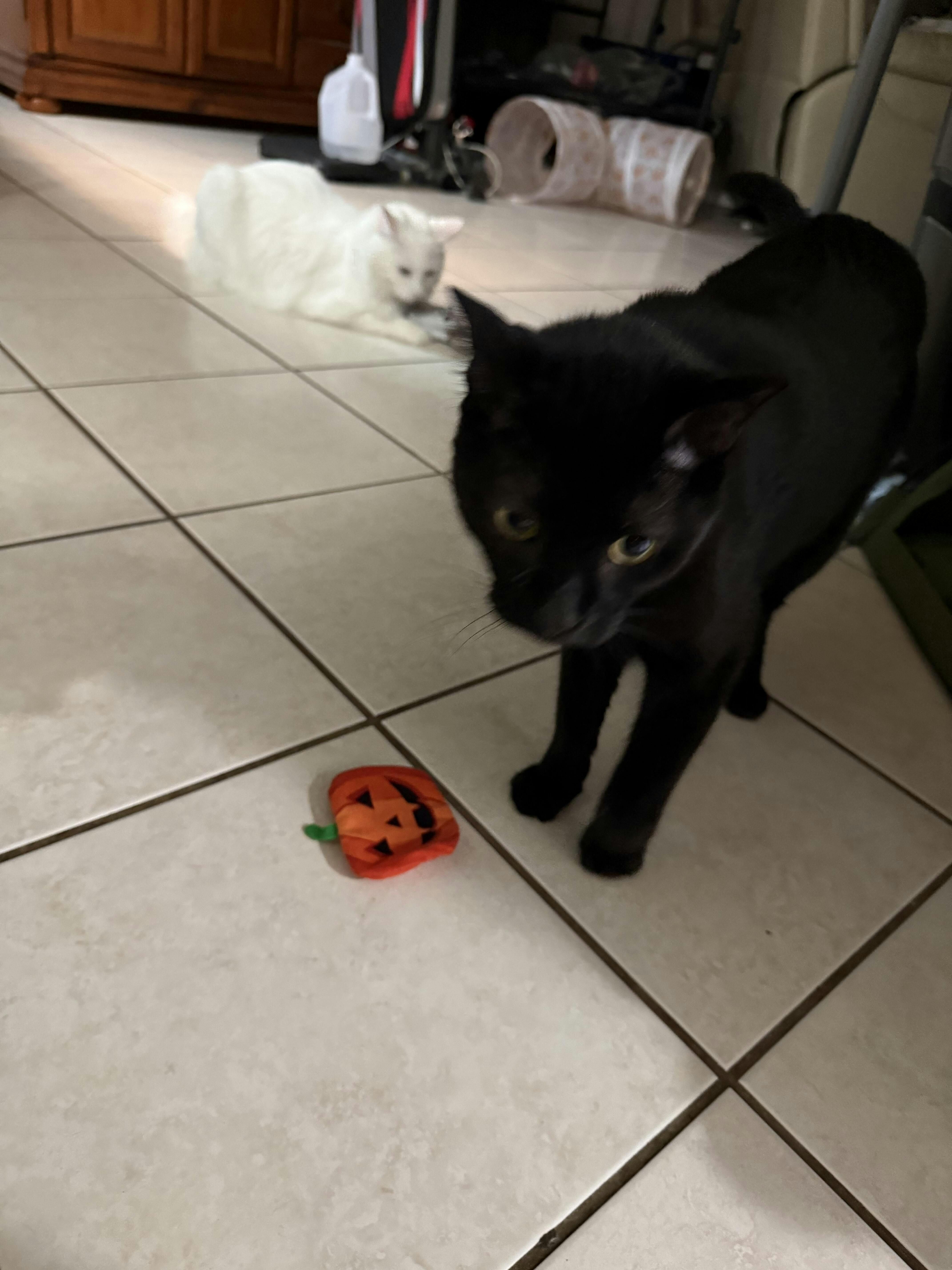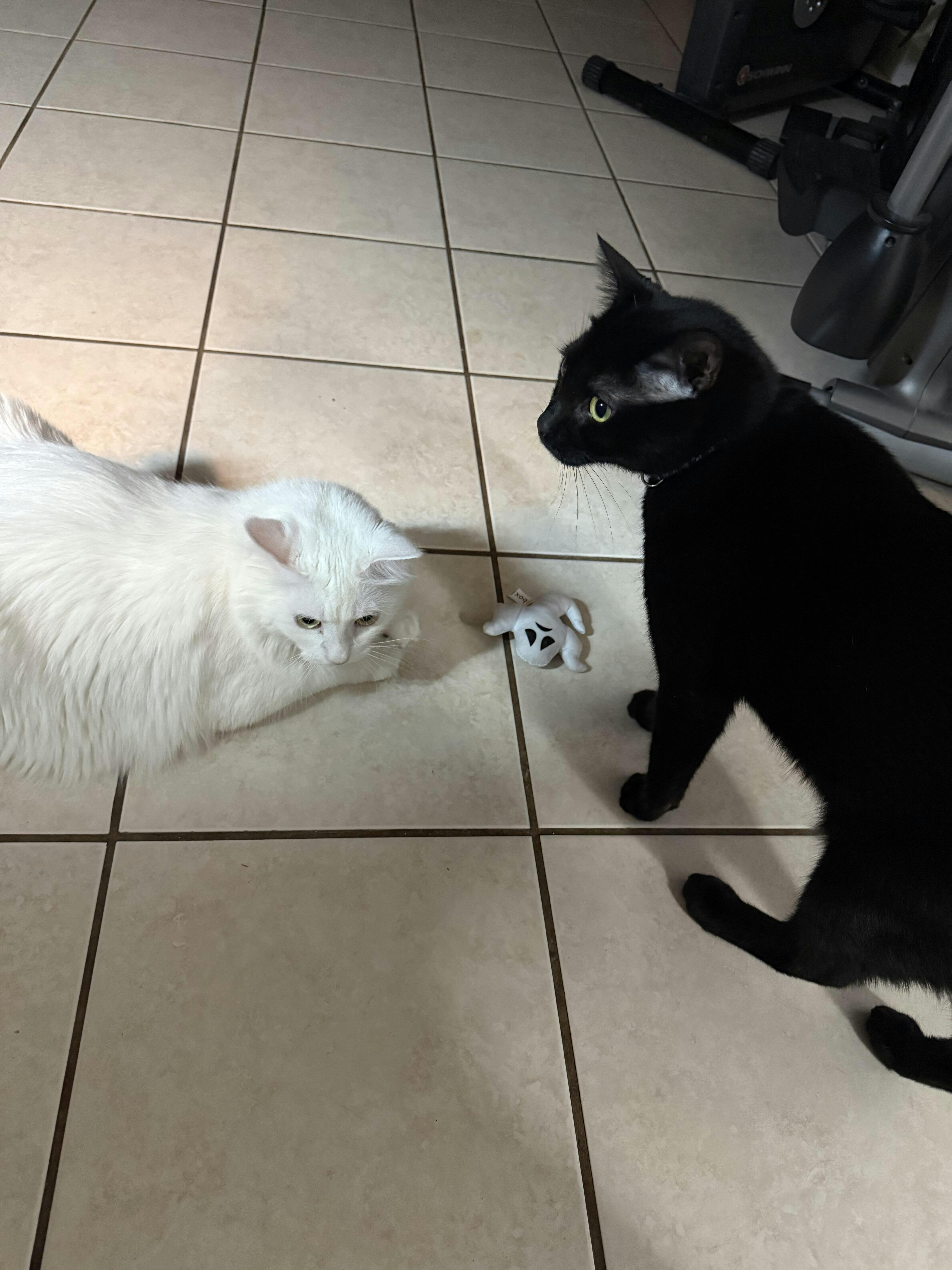 Mochi is on the left, and Wonton is on the right. As you can tell by our ridiculous Christmas card picture, we are big cat lovers.
